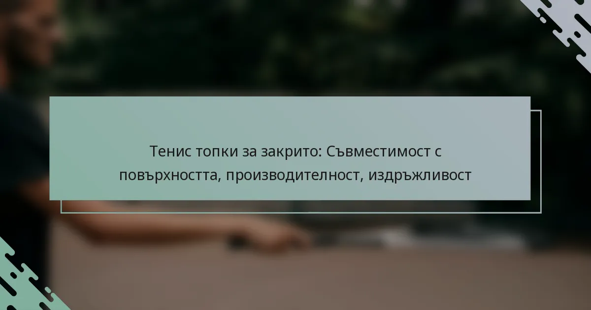 Различните закрити повърхности изискват специфични типове тенис топки, за да оптимизират представянето. Общите закрити повърхности включват дървени подове, килими и синтетични материали, всеки от които влияе различно на поведението на топката.